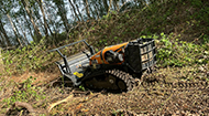 Funkgesteuerte Mähraupe mit Forst- oder Grasmulcher – ideal für steile Hänge bis 55° mit geringem Bodendruck für schonende Flächenpflege.
