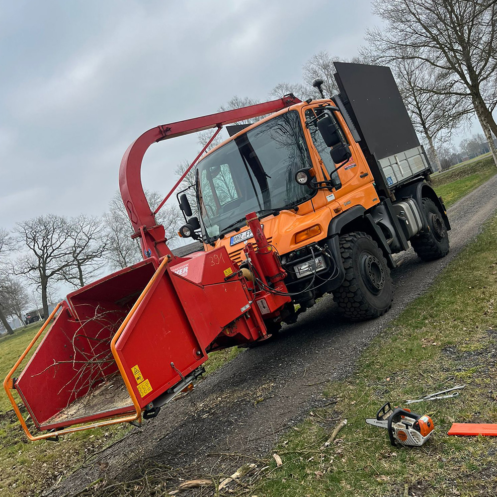 Holzhäckselarbeiten führen wir mit leistungsstarken Maschinen wie dem Unimog mit Dücker HF 250, dem Först St6p, der Jenz Cobra und dem Cheetah 30 Track durch – effizient und flexibel für verschiedene Einsätze.